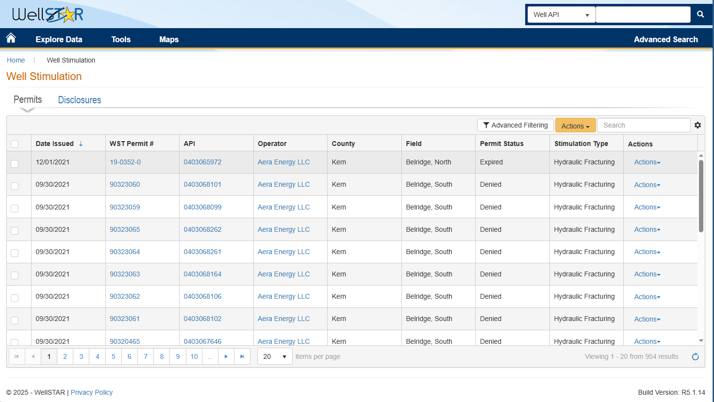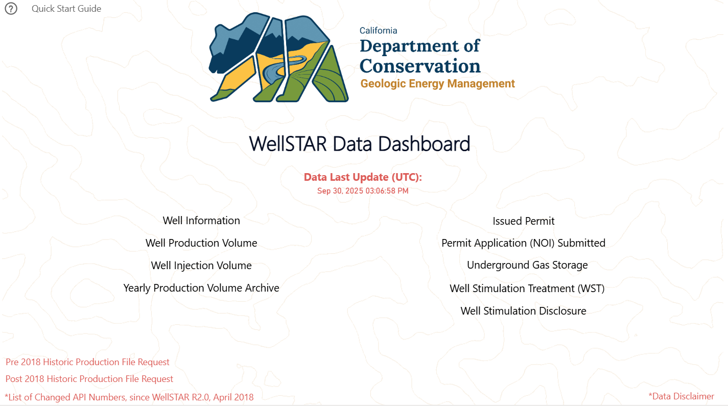 WellSTAR furthers CalGEM’s commitment to public safety and environmental protection by providing transparency, ease of use, and access to important, sortable data in a single portal. The release of WellSTAR ensures compliance with CalGEM’s Well Stimulation Treatment and Well Maintenance regulations, as well as other state and federal requirements.