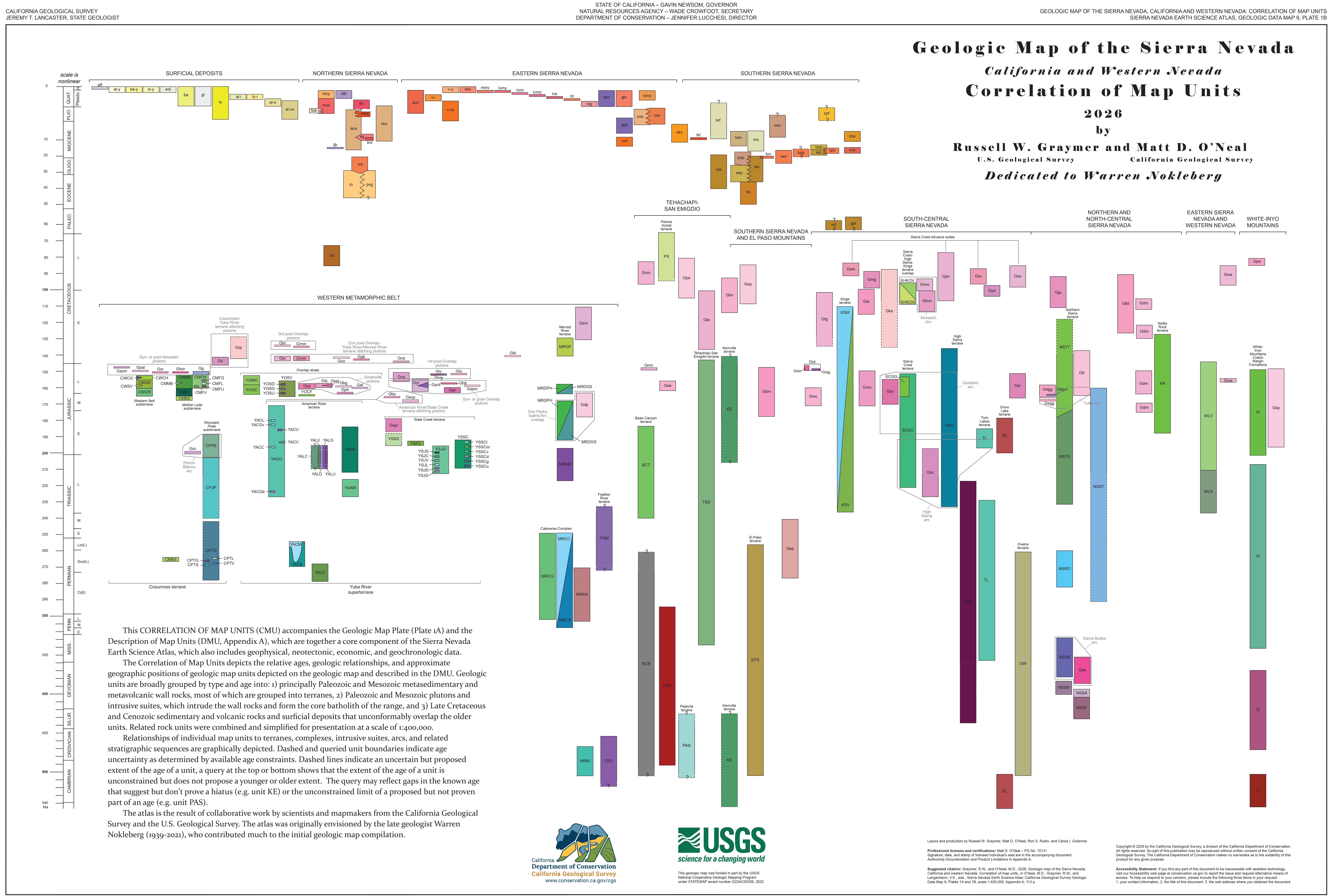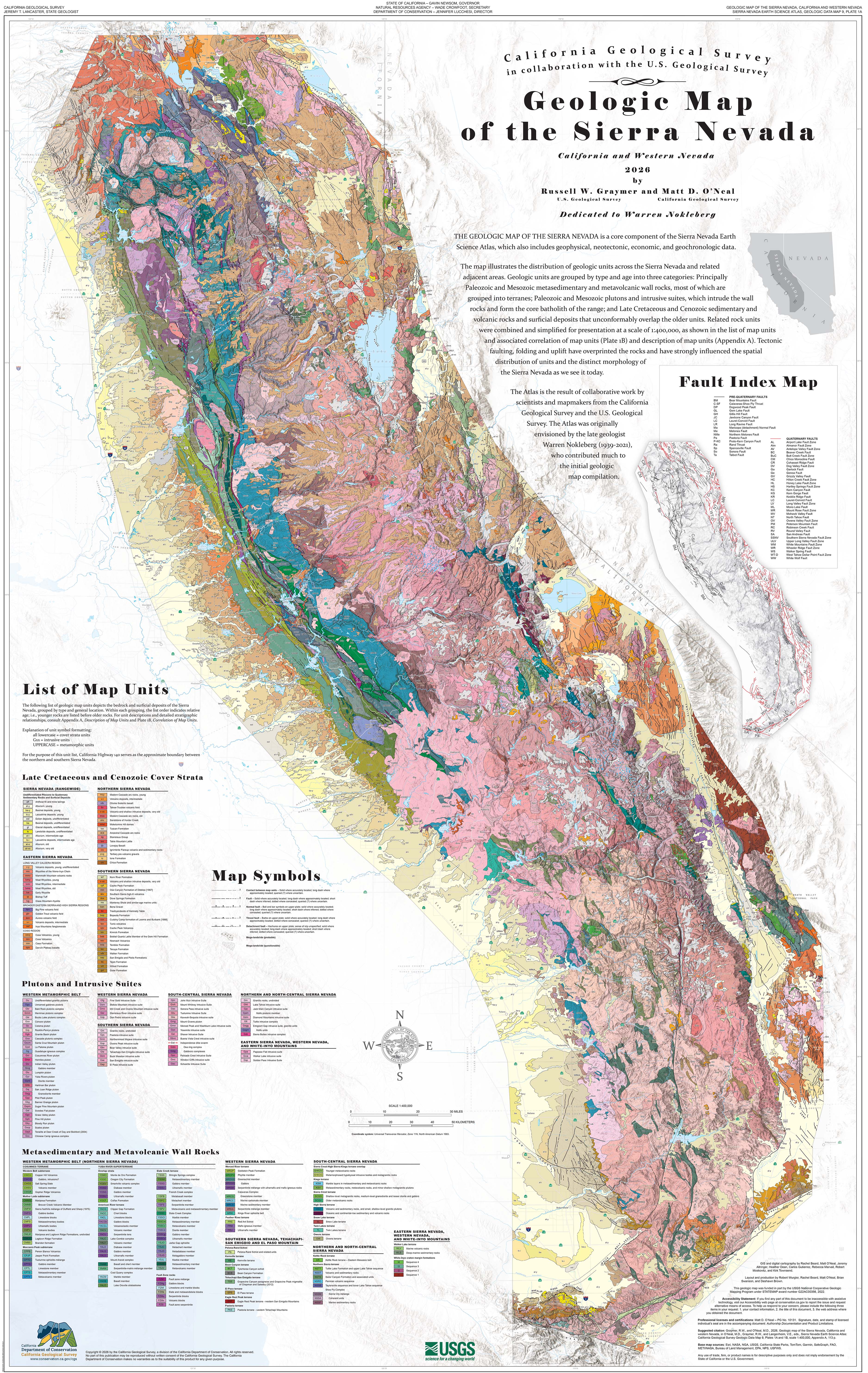 Plate 1A: Geologic Map of the Sierra Nevada is one of several components of the Sierra Nevada Earth Science Atlas.