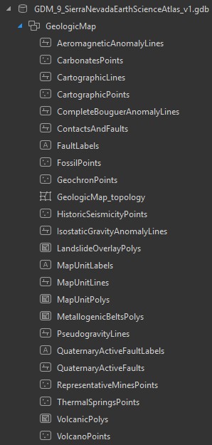 The Atlas is a collection of maps, geospatial datasets, and associated text, that presents geological and geophysical information for the Sierra Nevada. It includes: